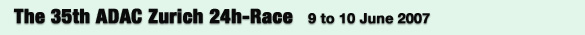 The 35th ADAC Zurich 24h Race, commonly known as Nurburgring 24-Hour Race, took place from June 8th - 10th, 2007 in Middle Western Germany. Needless to say, it is the toughest endurance race in the world, and there were over 200 entries from around the globe, especially from Germany and other European countries. Over 210,000 fans filled up the course sides, enjoying B.B.Q in this summer event. |