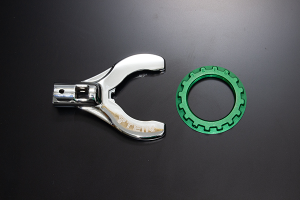 ストラットタイプのブラケットロックの高トルクでも掛け易いよう専用設計されたレンチでスピナーハンドル、トルクレンチどちらも使えるよう差し込み口をそれぞれ用意し、作業性にもこだわった一品です